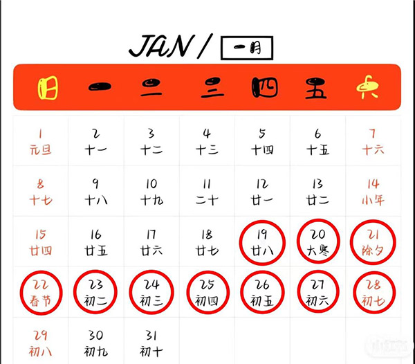 春節(jié)放假時間